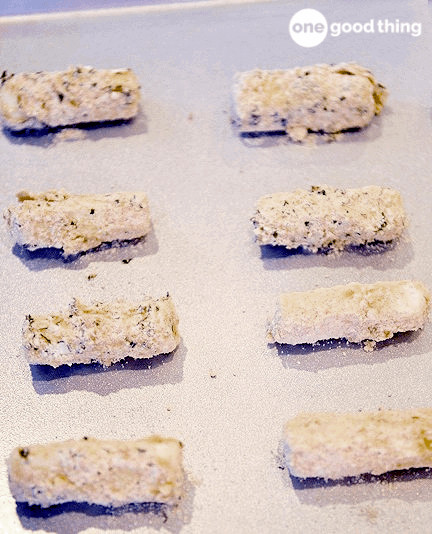 Working one at a time, dip each cheese stick into the flour, then the egg mixture, and then the bread crumbs. Aim to completely coat each piece of cheese โ pressing the breadcrumbs against the cheese can help them stick better.